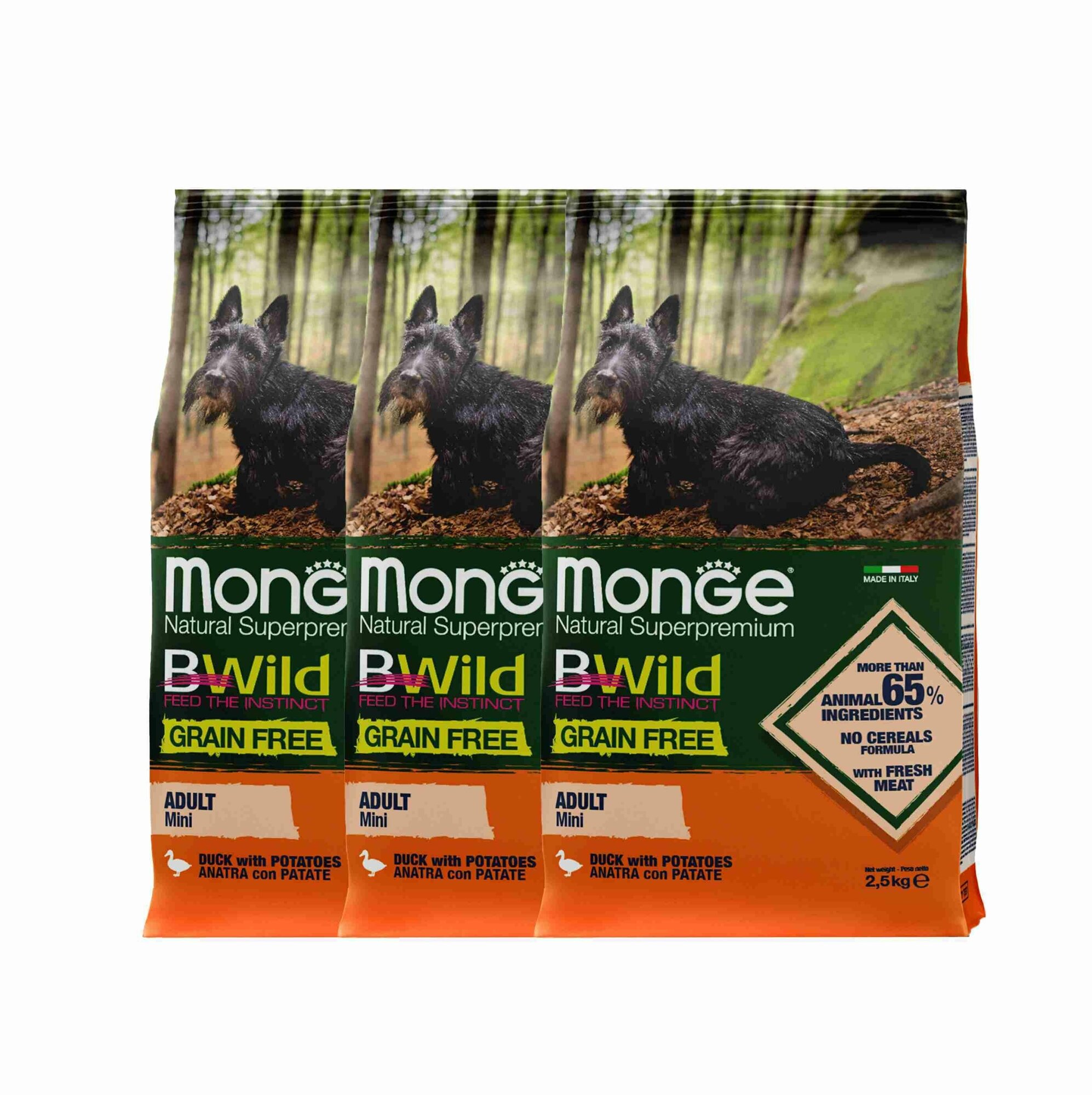 Корм для собак Сухой корм для собак Monge BWILD Feed the Instinct, утка, с картофелем 3 шт. х 2.5 кг (для мелких пород)