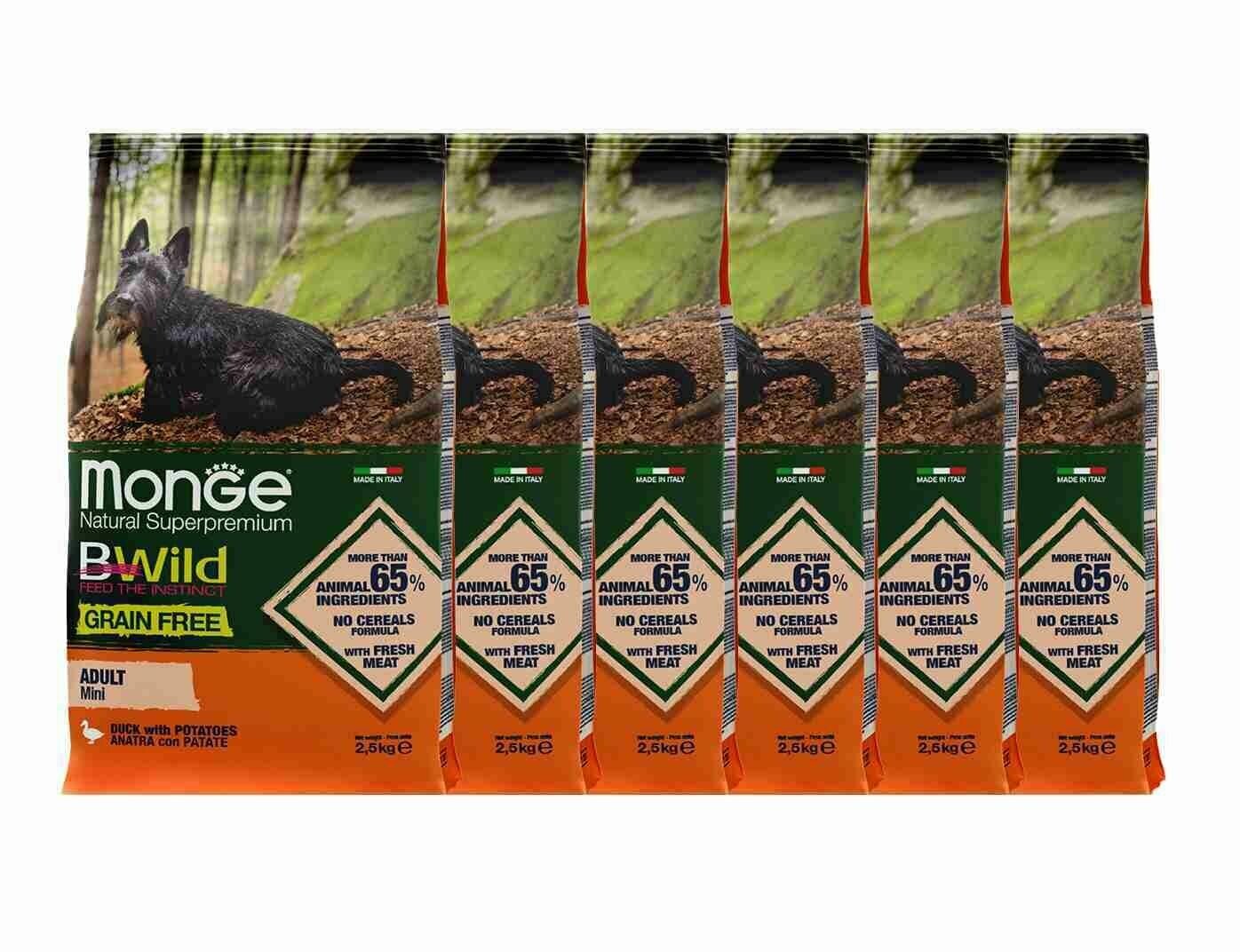 Корм для собак Сухой корм для собак Monge BWILD Feed the Instinct, утка, с картофелем 6 шт. х 2.5 кг (для мелких пород)