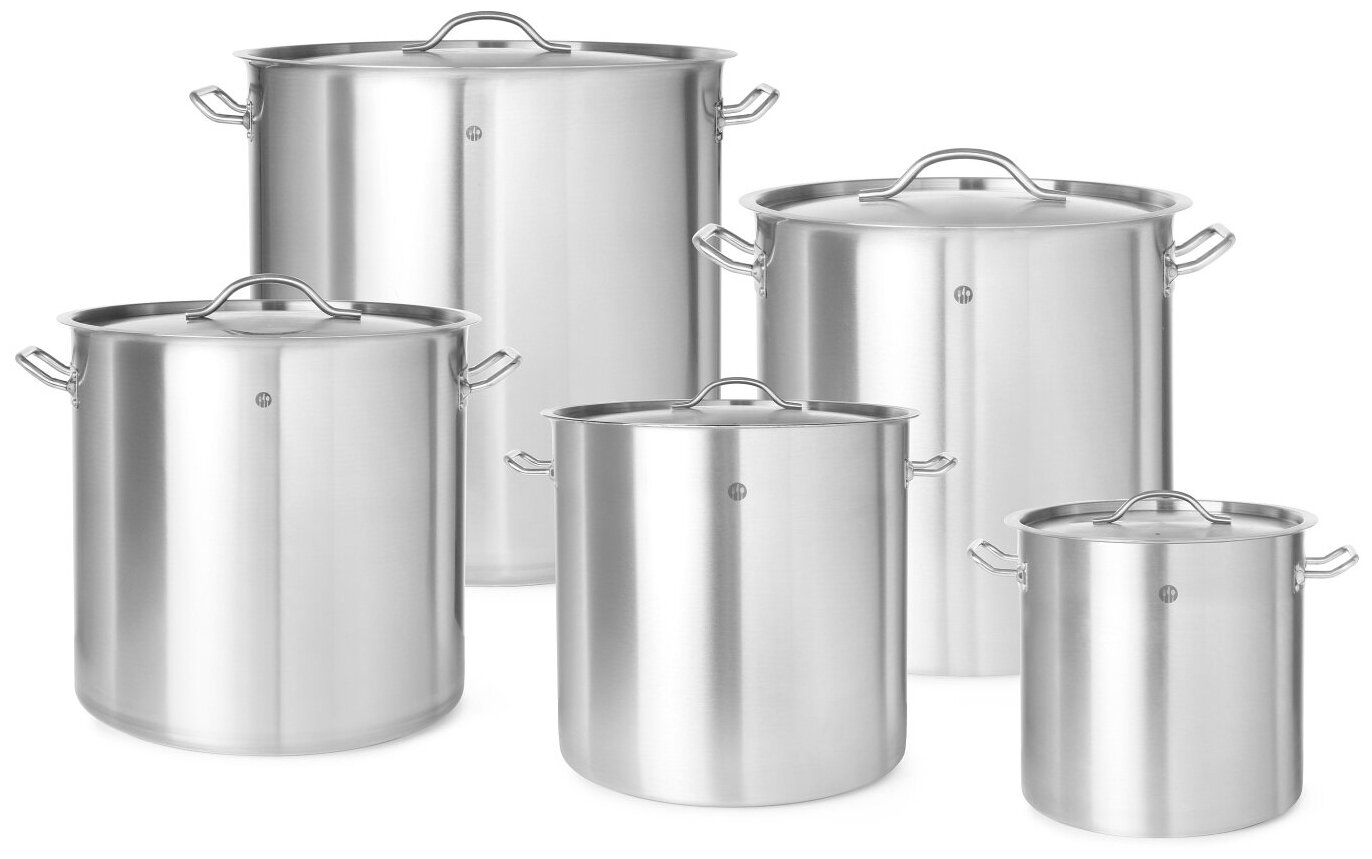 Лучшие цены. Кастрюля с крышкой из серии Budget Line марки Hendi Продукт рекомендован для большой и малой гастрономии, а также для домашнего использования. Особенности продукта: Кастрюля изготовлена из нержавеющей стали Размер: Ø300x(H)200 мм Конструкция дна типа „сэндвич” (нержавеющая сталь/алюминий 4,0 мм /сталь 18/0 - 0,8 мм) сочетает в себе свойства алюминия в области распределения тепла с прочностью и магнитными свойствами нержавеющей стали Внешняя поверхность матовая с полированным креплением и полированным краем. Магазины в вашем городе.