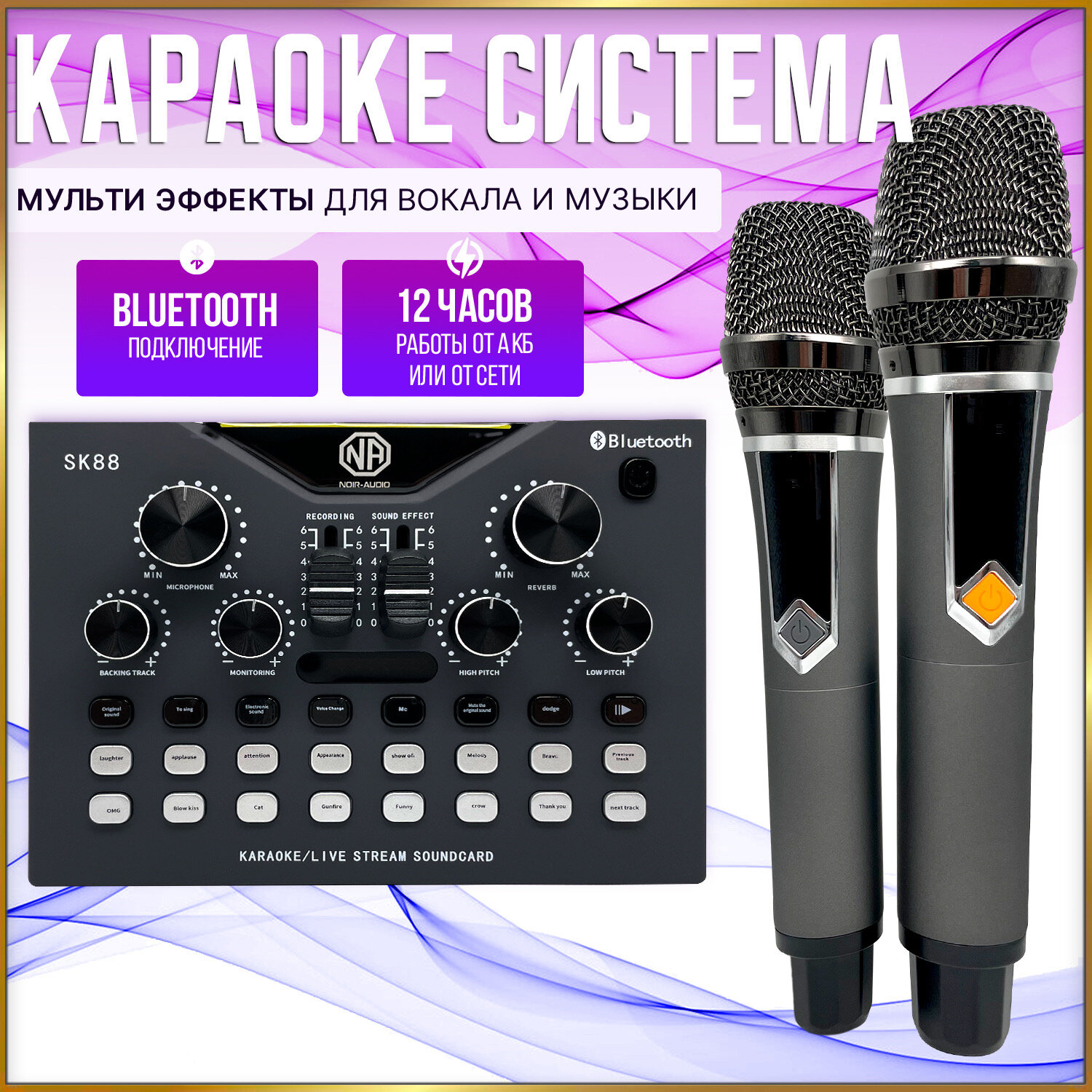 Микрофоны Беспроводной микрофон NOIR-audio SK88 с микшером и Bluetooth, два беспроводных микрофона