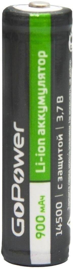 Аккумулятор Li-ion 14500 GoPower 3.7В 900мАч с защитой, высокий контакт, в упаковке 1 шт.