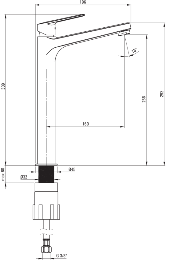 | Высота смесителя | 297 мм |