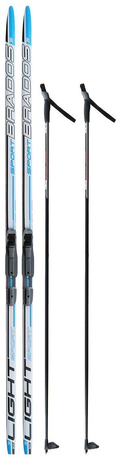 Комплект лыжный: пластиковые лыжи 160 см без насечек, стеклопластиковые палки 120 см, крепления SNS, "Бренд ЦСТ"