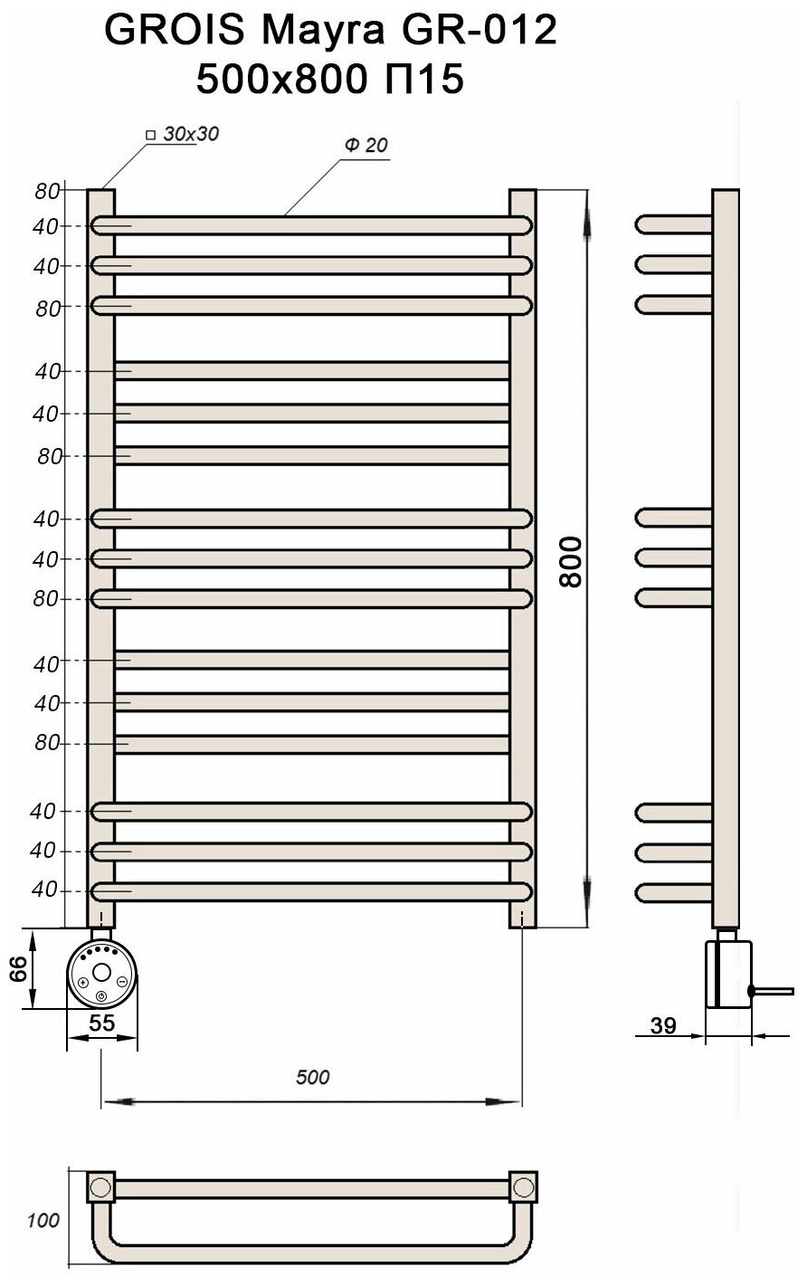 Полотенцесушители Полотенцесушитель GROIS Grois Mayra GR-012 500х800 П15 (3+3+3+3+3) RAL9005 черный матовый