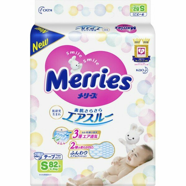 Merries подгузники S (4-8 кг), 82 шт.