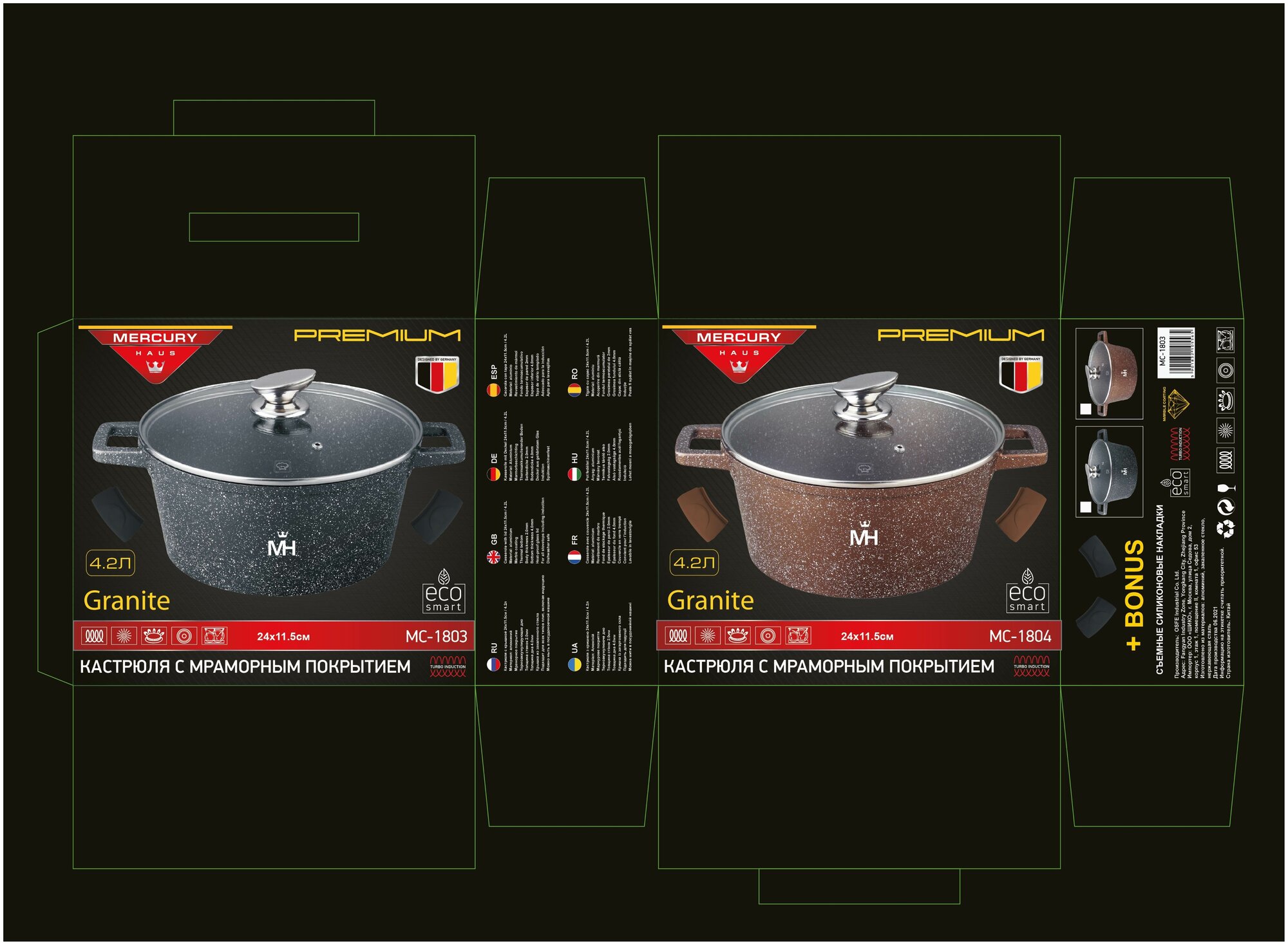 Кастрюли Кастрюля с крышкой "MercuryHaus", MC - 1803 Granite (6) 4,2 л 24*11,5 см