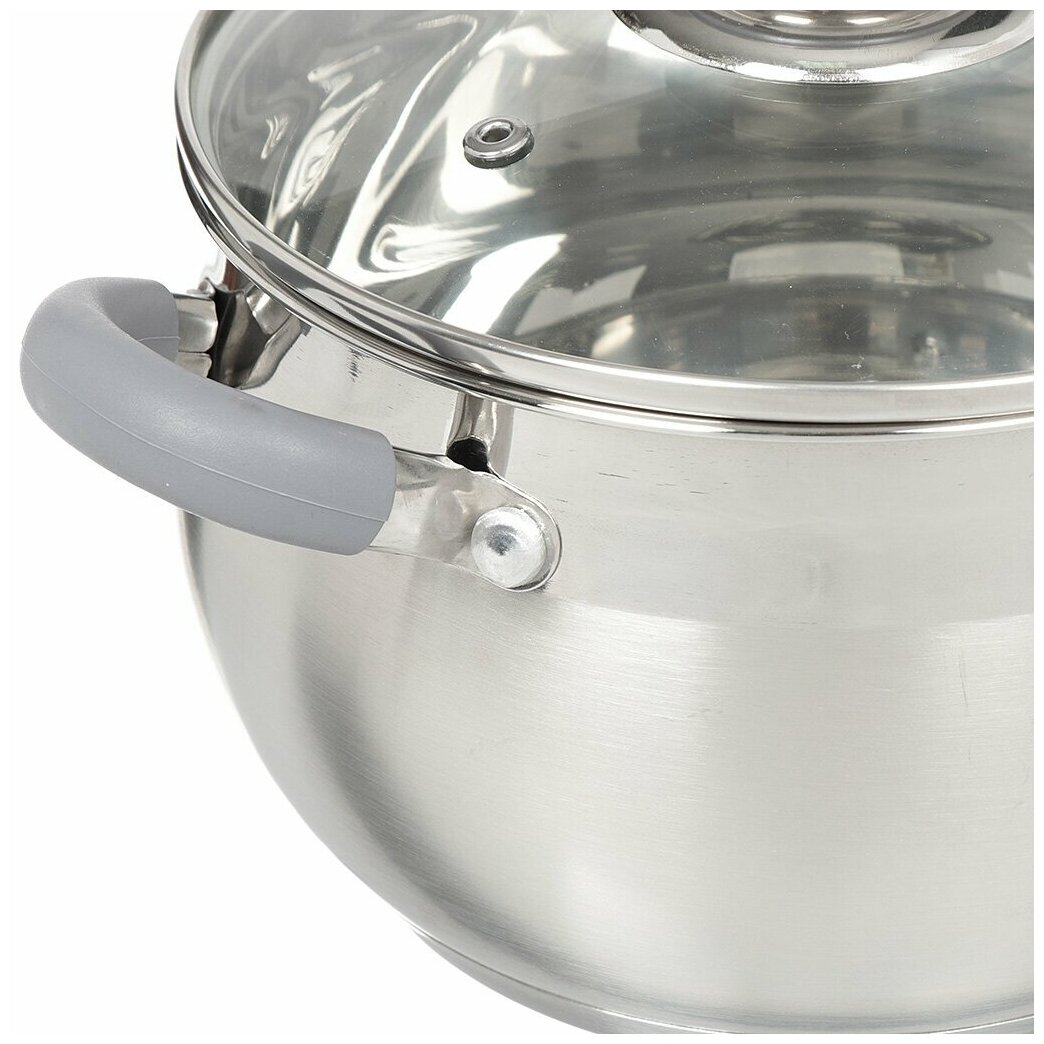 Кастрюля нержавеющая сталь, 2.9 л, с крышкой, крышка стекло, Daniks, Модерн серый, SD-18N, индукция 2 930 ₽ Подробнее