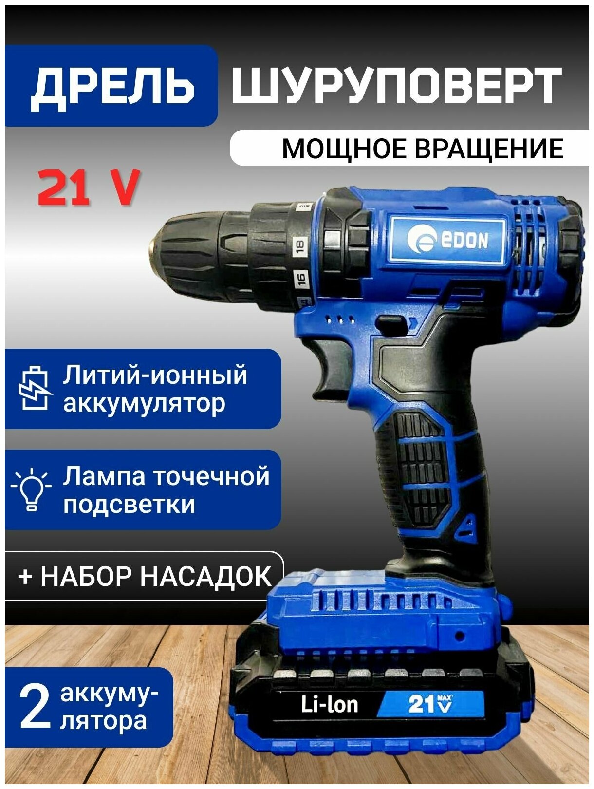 Дрели и шуруповерты Дрель-шуруповёрт аккумуляторная Edon AD-21E
