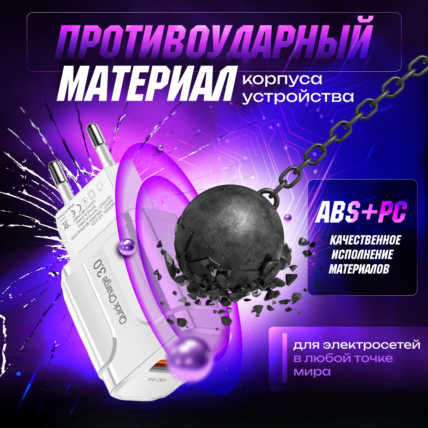 Быстрая зарядка для телефона QC3.0, блок питания 18W, сетевое зарядное устройство, скоростной адаптер, белый 380 ₽ Подробнее