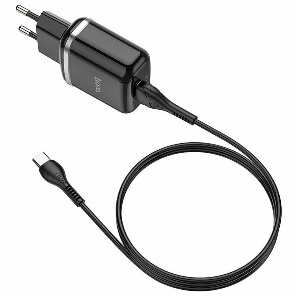 Зарядки для гаджетов Сетевое зарядное устройство + кабель Type-C N3 USB QC3.0 черный HOCO N3 USB QC3.0 черный