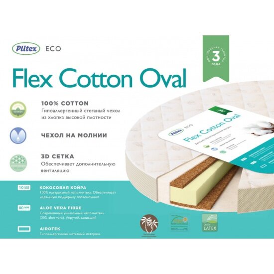 Матрасы Матрас PLITEX (Плитекс) Flex Cotton Oval 1250х650х100 мм