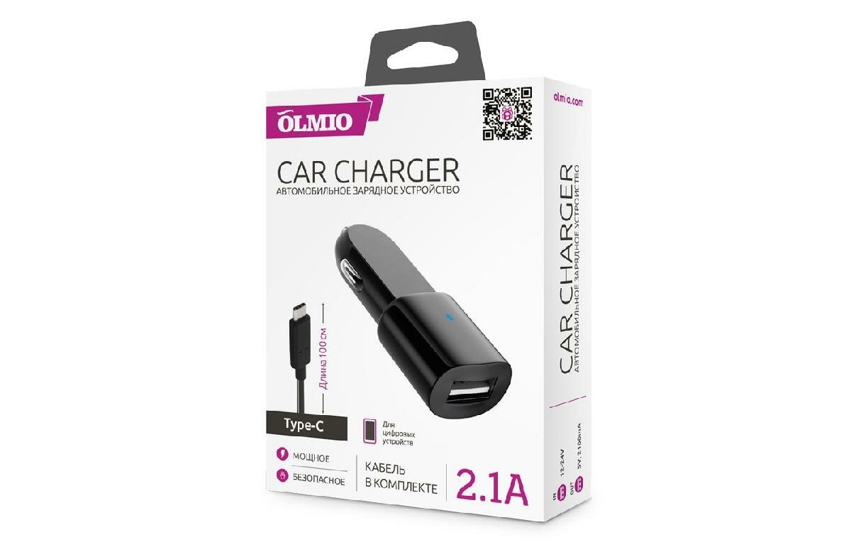 Лучшие цены. Автомобильное зарядное устройство Olmio USB 2.1A + Type-C кабель. Магазины в вашем городе.