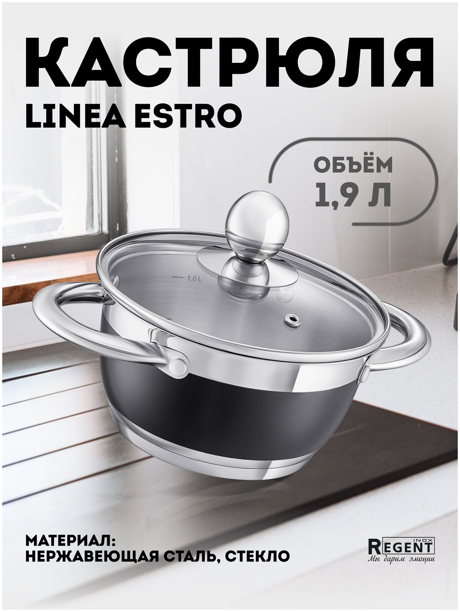 Кастрюля Кастрюля Regent Inox Linea ESTRO со стеклянной крышкой 1,9 л, 18х9,5см (93-ES-03)