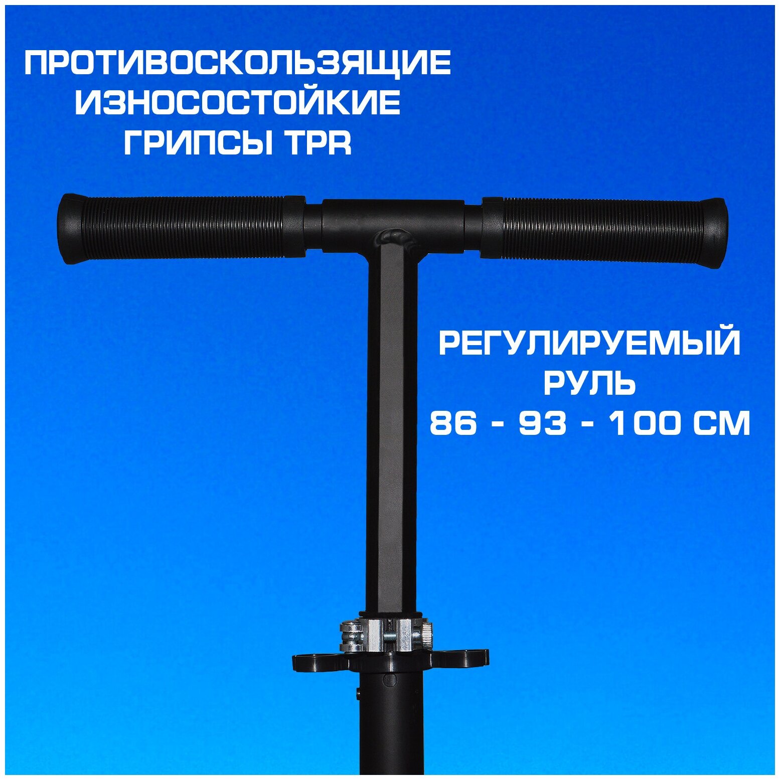 Лучшие цены. Состав конструкции: алюминий 50% и сталь 50% Колеса, диаметр (мм): 200 Колеса, материал: полиуретан Клиренс (мм): 85 Колеса, жесткость (А): 82 Руль, высота (см): 86/93/100 Грипсы, материал: резина Дека, ширина (см): 11.5 Дека, длина (см): 53 Подшипники: ABEC-7 RS Система складывания: есть Подножка: есть Рекомендуемый рост (см): до 180 Максимальный вес пользователя (кг): 100 Размеры самоката в собранном виде (см): 89*32.5*100 Вес (кг): 3.2 Вес в упаковке(кг). Магазины в вашем городе.
