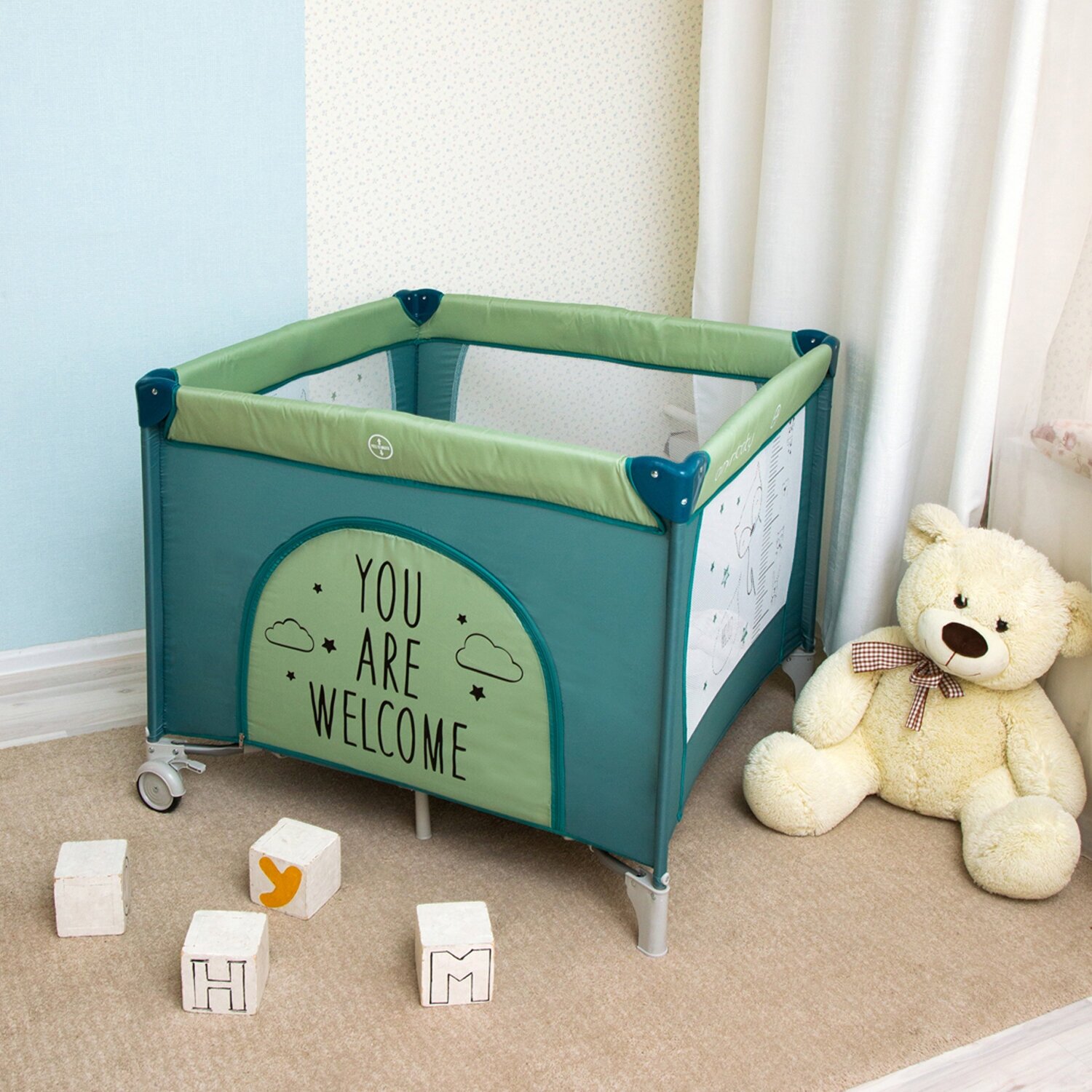 Манеж Amarobaby WALKY (Good Day Fox) квадратный, оливковый