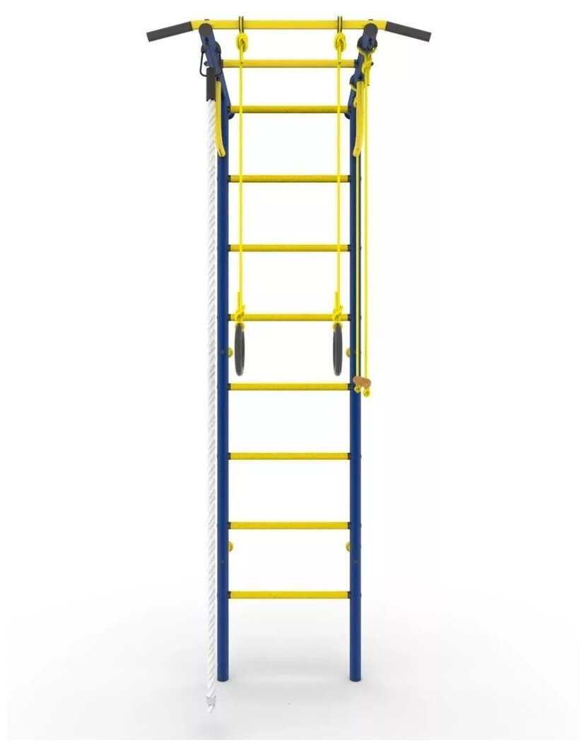 Лучшие цены. Ширина, см : 65; Возраст : От 3 лет; Высота, см : 230; Толщина металла, мм : 1.5; Диаметр ступени, см : 2.9; Шаг ступени, см : 26; Диаметр трубы, мм : 38; Ширина ступени, см : 46.5; Ширина турника, см : 87; Maксимальная нагрузка, кг : 100; Ширина комплекса, мм : 550; Глубина комплекса, мм : 650; Тип крепления : К стене; Комплектация : Нерегулируемый турник; Комплектация : Комплекс; Комплектация : Трапеция; Комплектация : Кольца; Комплектация : Канат; Высота комплекса, мм : 2300; Тип ступеней : С покрытием. Магазины в вашем городе.