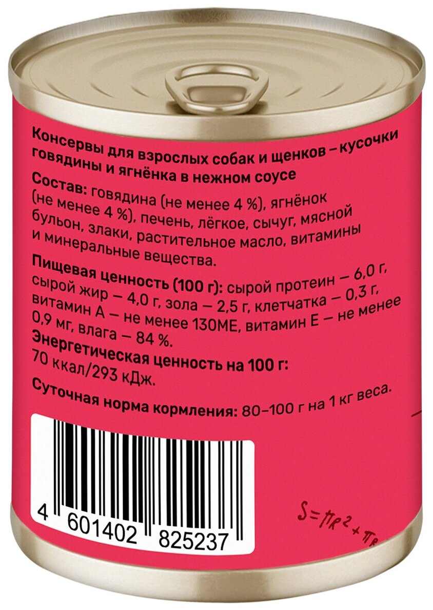Smart Dog консервы Консервы для взрослых собак и щенков кусочки говядины и ягненка в нежном соусе 22ел16 43750 0,4 кг 43750 (2 шт)