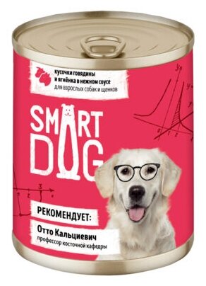 Smart Dog консервы Консервы для взрослых собак и щенков кусочки говядины и ягненка в нежном соусе 22ел16 43752 0,85 кг 43752 (2 шт)