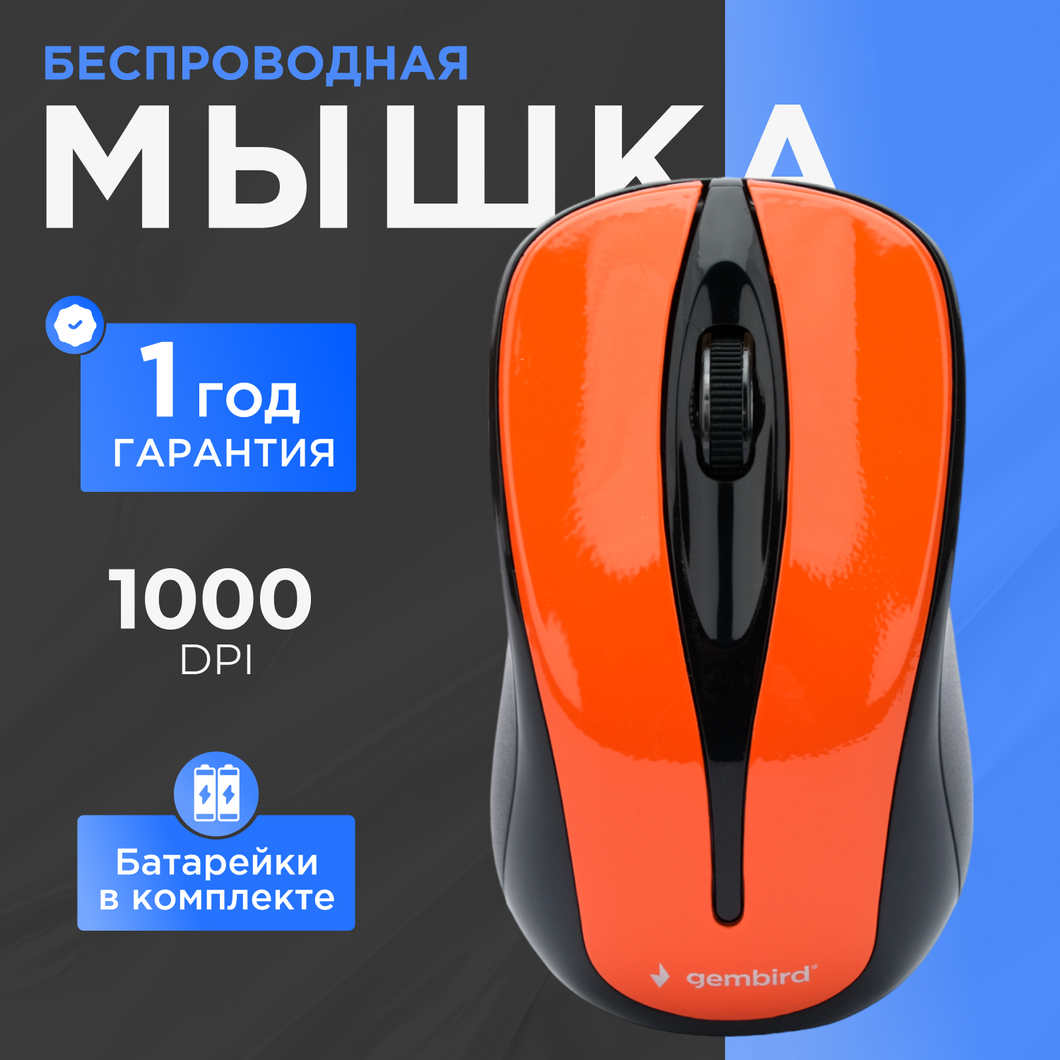 Мышь беспроводная Gembird MUSW-325-O, 2.4 ГГц, оранжевый, 2 кнопки+колесо-кнопка, 1000 DPI, батарейки в комплекте