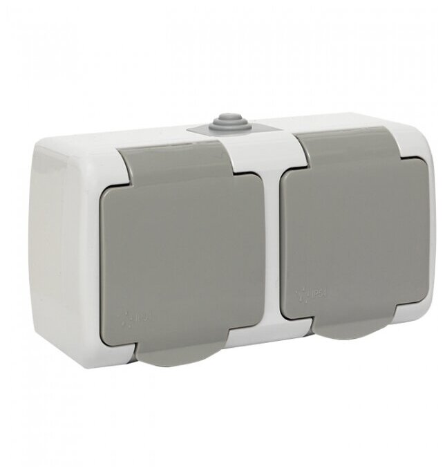 Розетки Розетка 2-местная с крышкой и с защитной шторкой Мурманск, с заземлением, 16А, IP54, серый