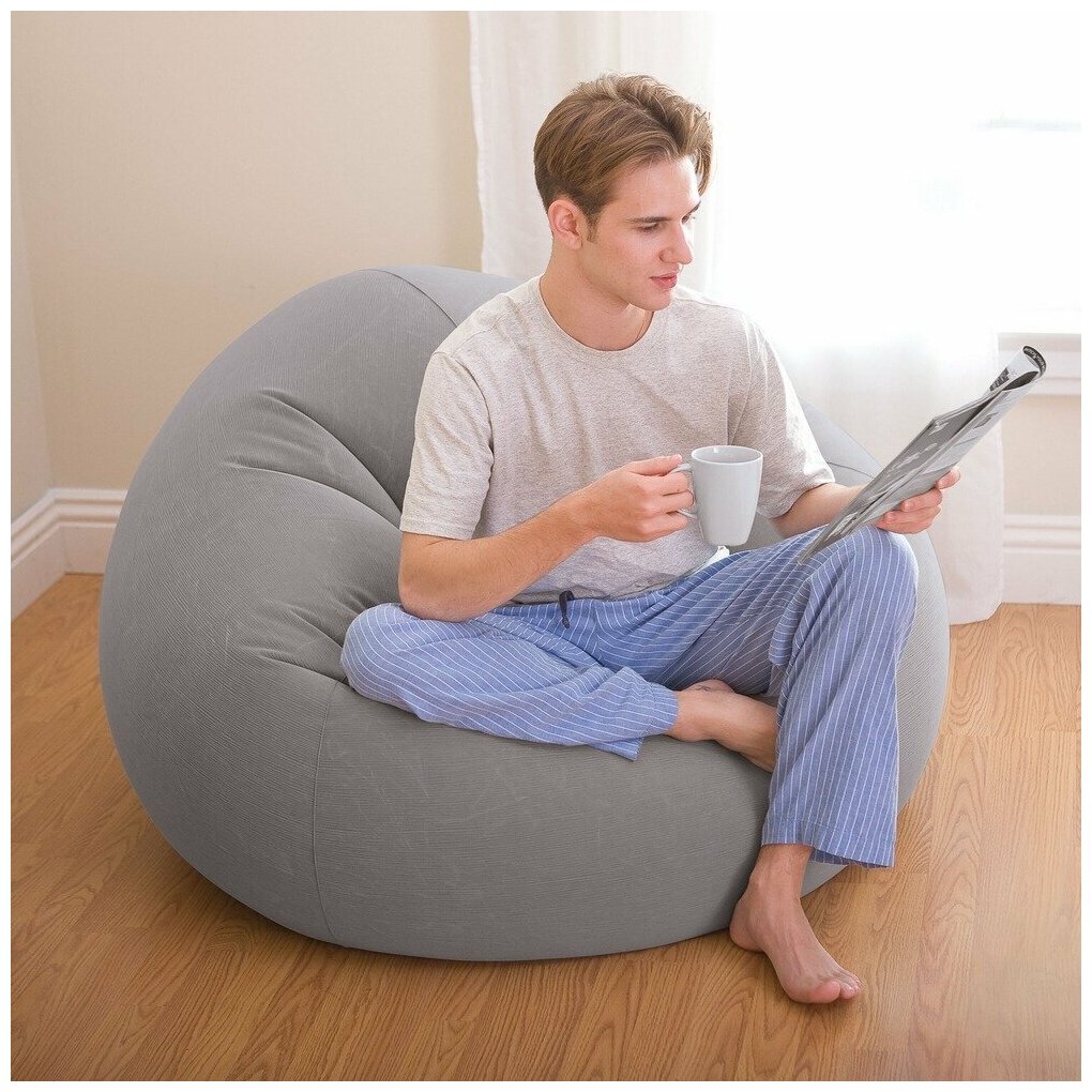 Надувное кресло Intex 114х114х71 см ''Beanless Bag'' серое, 100кг