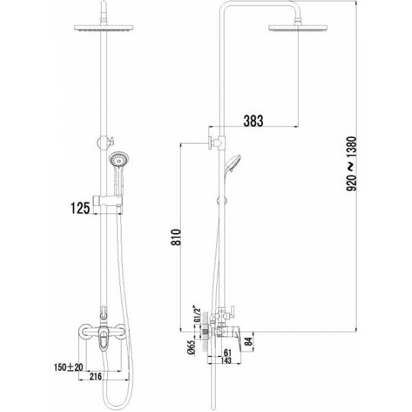 | Комплектация | ручной душ (душевая лейка) / верхний душ (тропический) / смеситель / стойка / штанга / душевой шланг / крепление ручного душа |