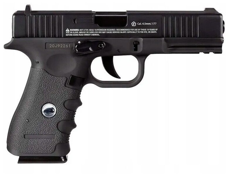 Лучшие цены. Пневматический пистолет Borner W119 (Glock17) 4,5 мм Borner W119 - это пневматическая копия боевого пистолета Glock 17 от американской компании Borner. Пистолет работает от газовых 12-граммовых баллончиков, имеет гладкий ствол, что позволяет использовать в качестве снарядов только шарики BB калибра 4,5 мм. Пистолет прекрасно подойдёт для любителей качественных пневматических копий боевого оружия. Магазины в вашем городе.