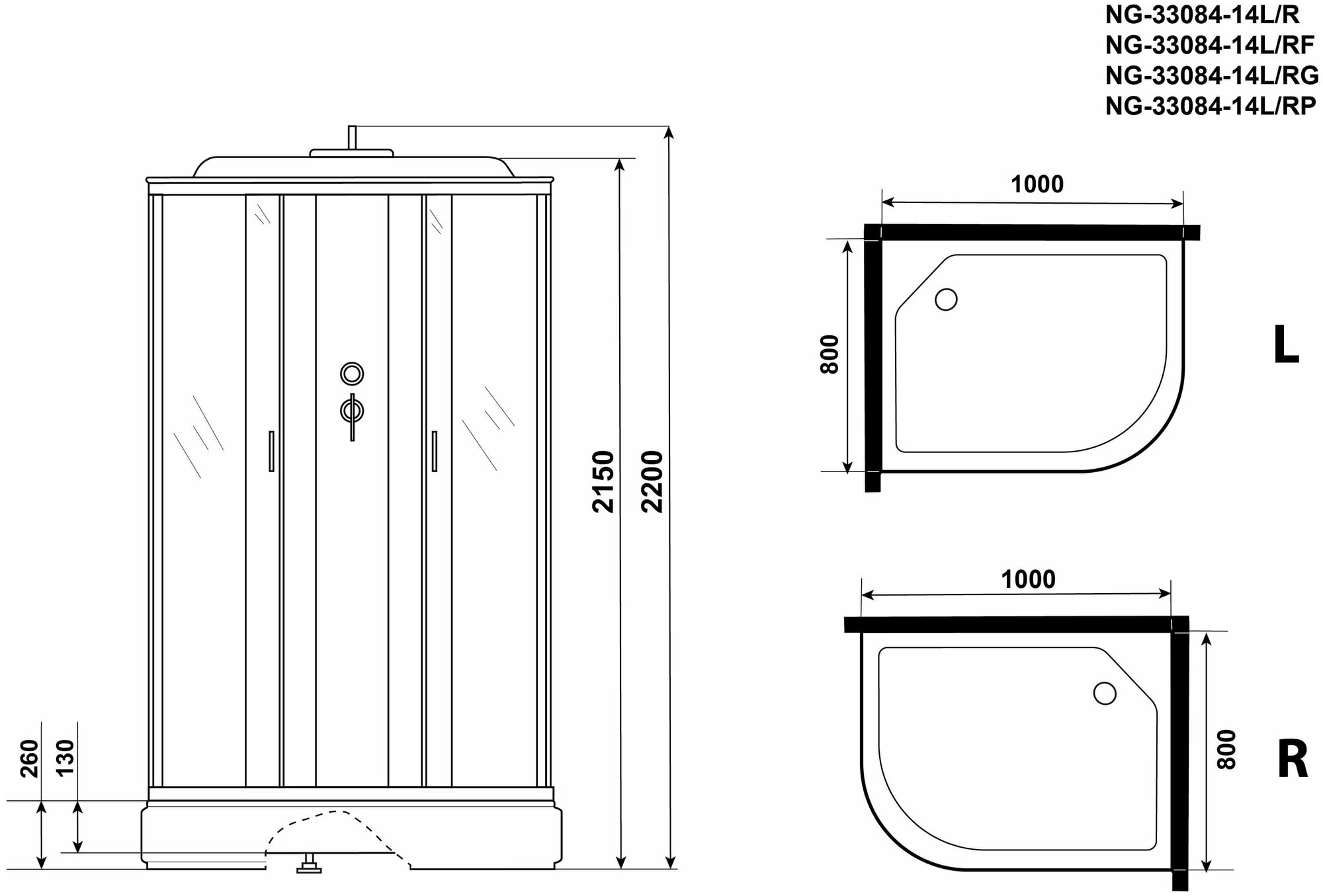 Душевая кабина ng-2310-14rbkg (1200х800х2000) высокий поддон(40см) стекло матовое 61 300 ₽ Подробнее