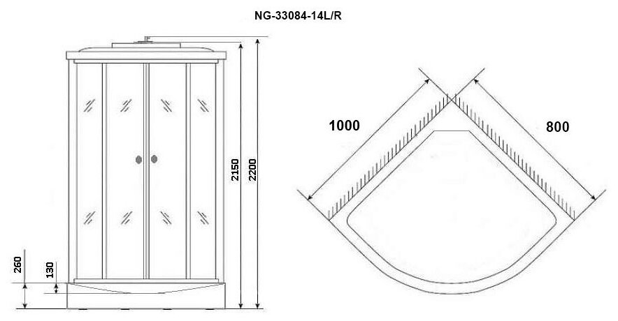 Душевая кабина ng-33984-14q (900х800х2150) средний поддон (26см) стекло матовое