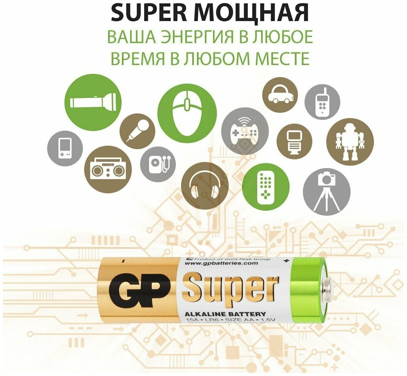 Батарейки GP Super, AA (LR6, 15А), алкалиновые, пальчиковые, комплект 20 шт., 15A-2CRVS20, GP 15A-2CRVS20