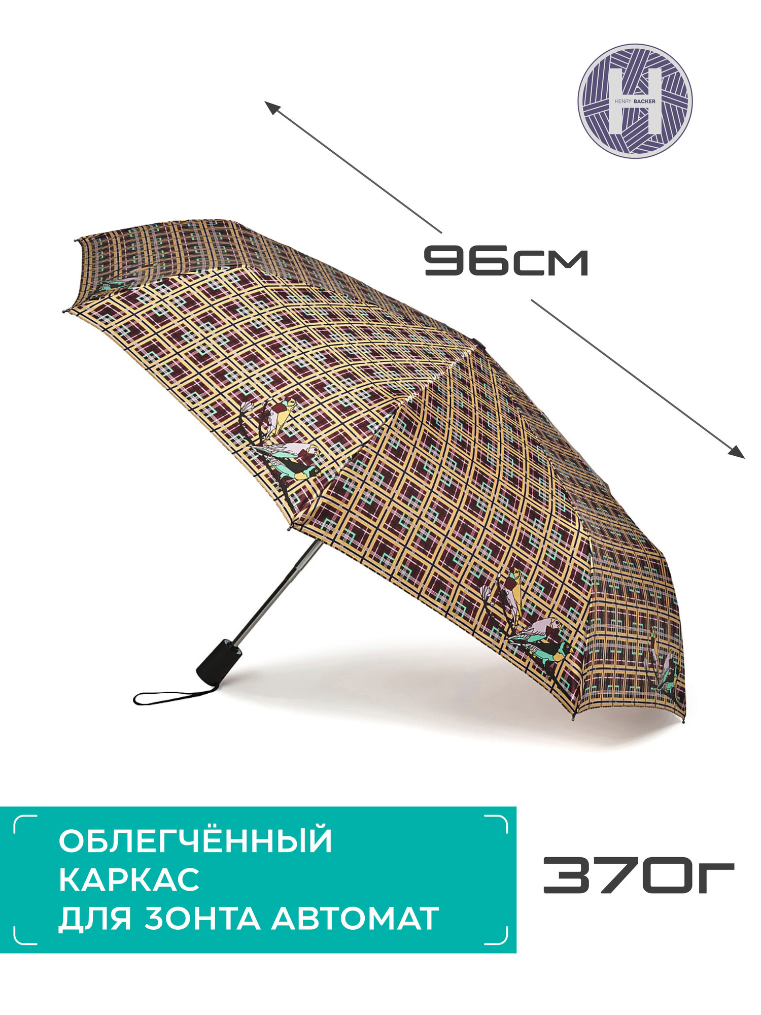 Зонт Q2105 CheckYellow (Желтая клетка) Зонт женский автомат Henry Backer