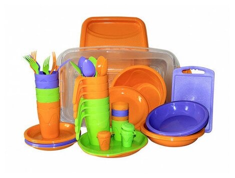 Лучшие цены. Набор для пикника на 6 персон. Благодаря своей легкости, удобству в использовании и экономичности, пластиковая посуда является неотъемлемой частью похода, пикника или любого другого путешествия. Набор для пикника изготовлен из высококачественного пищевого пластика и предназначен для сервировки столов в любых условиях. Техническое описаниеКоличество персон: 6 персонМатериал: пластикВес: 2225 грРазмеры в походном положении: 46.5х31х19 ммСостав набора: Контейнер, 16 литров: 1 штМиска с крышкой: 1 штТарелка для. Магазины в вашем городе.