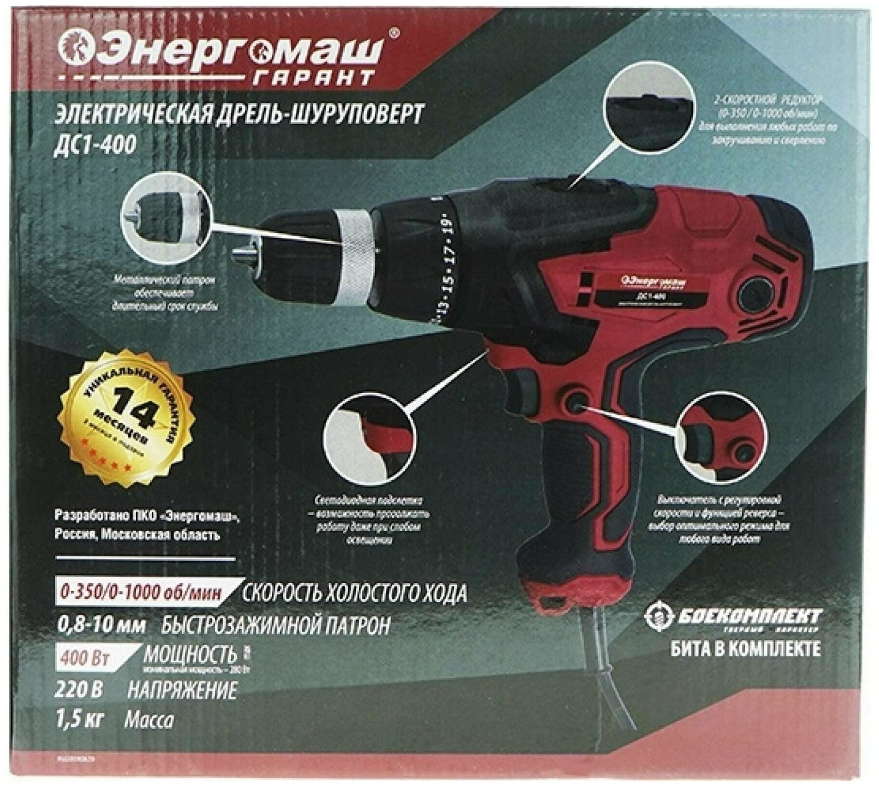 Дрель-шуруповерт Энергомаш гарант ДС1-400, 400 Вт, без аккумулятора