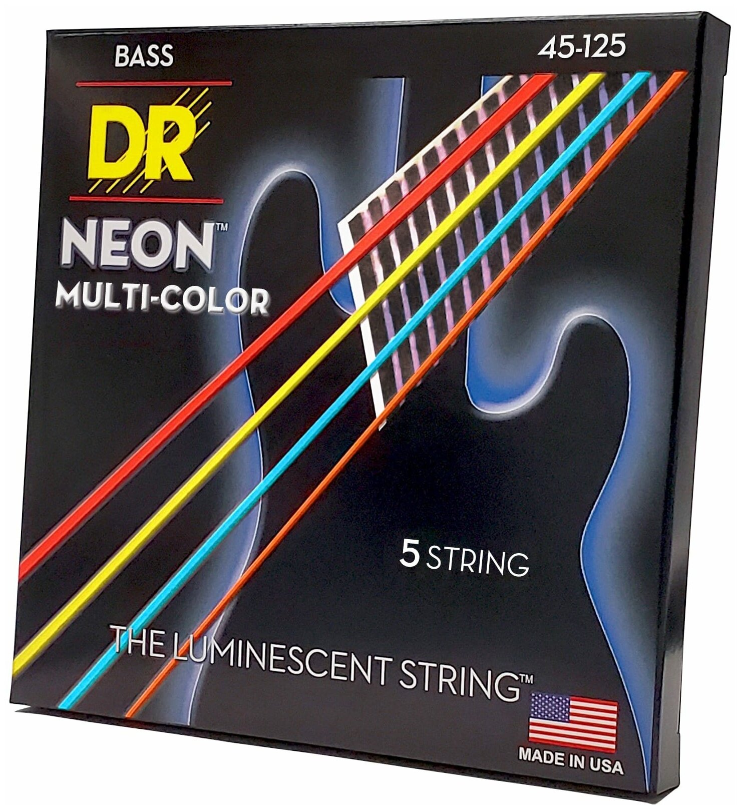 Струны DR NMCB5-45 HI-DEF NEON струны для 5-струнной бас гитары с люминисцентным покрытием разноцветн