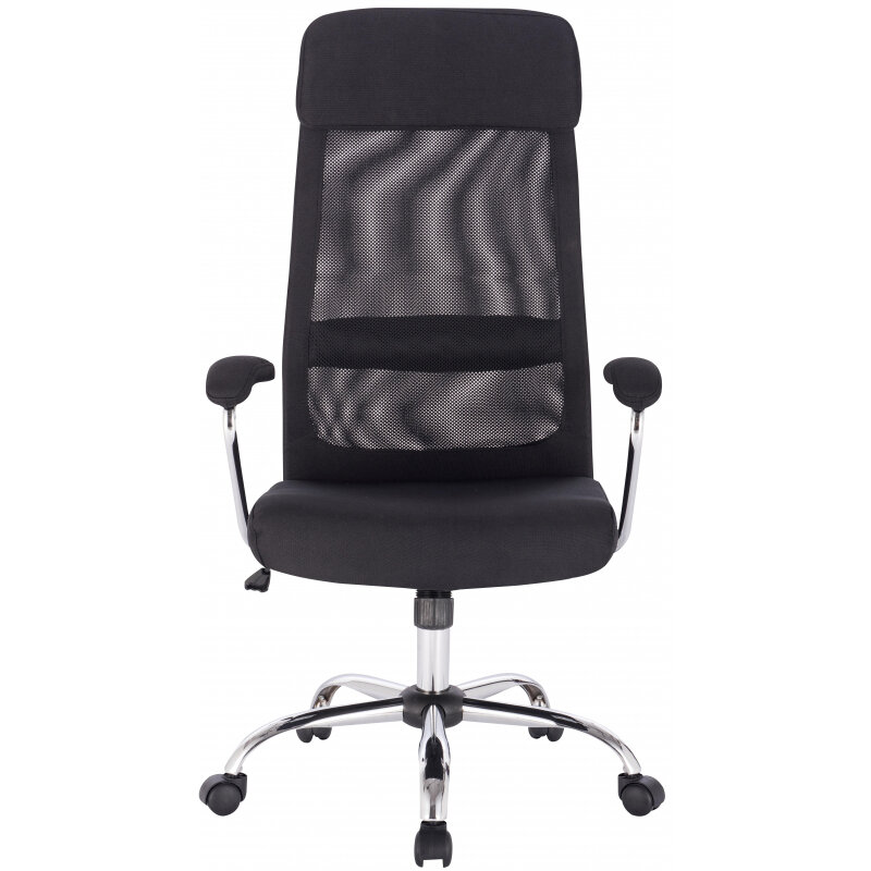 Кресло компьютерное Easy Chair для руководителя, черное, с подлокотниками, ткань, сетка, крестовина из металла