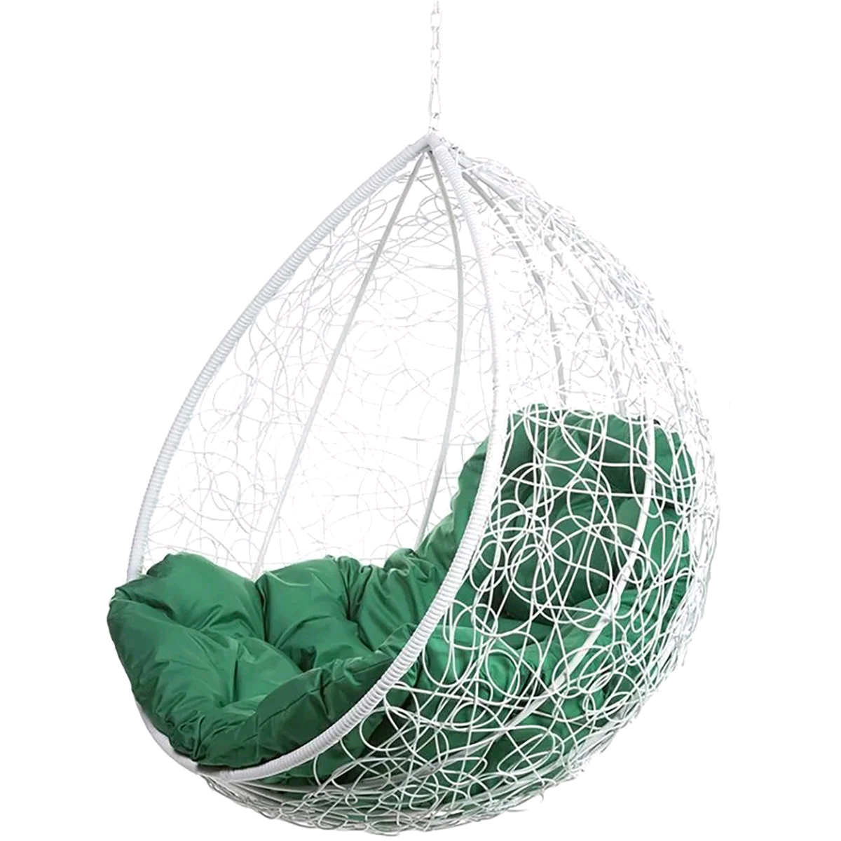 Садовая качель Кресло подвесное Bigarden "Tropica", белое, без стойки, зеленая подушка