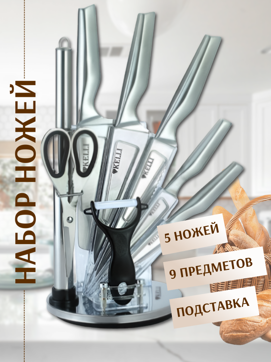 Набор кухонных ножей на подставке Kelli 9 предметов 3 052 ₽ Подробнее