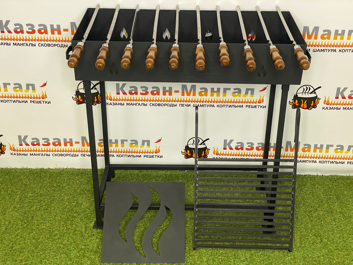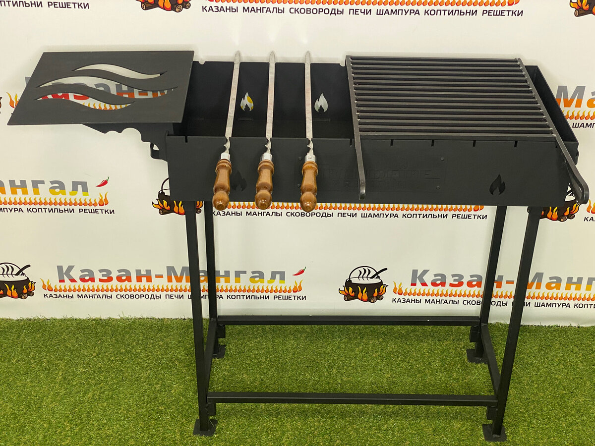 Лучшие цены. Комплект: Мангал 3мм (GFP-80) со столиком + 10 шт. шампуров 40 см + решетка для гриля (33х33 см). Мангал Grand Fire Premium – качественное изделие, спроектированное с учетом многолетнего опыта, для приготовления ваших любимых блюд на огне. Мангал изготовлен из стали толщиной 3 мм и покрыт полимерным/полиэфирным термостойким составом, который выдерживает температуру до 900 С. Это редкий и сложный процесс покраски мангалов, который придает металлу кроме декоративных свойств, защиту от коррозии. Магазины в вашем городе.