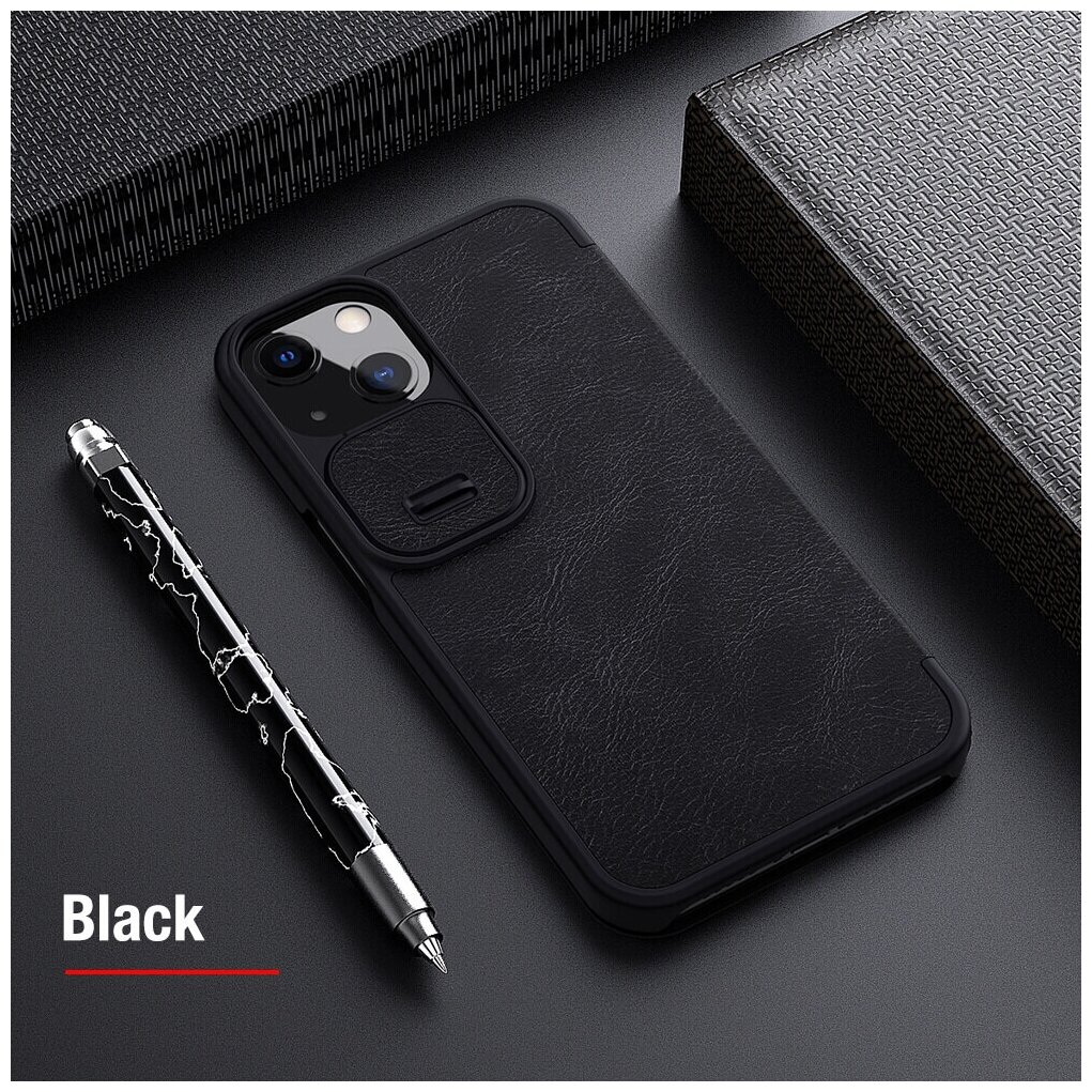 Чехол Кожаный чехол-книжка Nillkin Leather Qin Pro c защитой камеры для iPhone 13 черный
