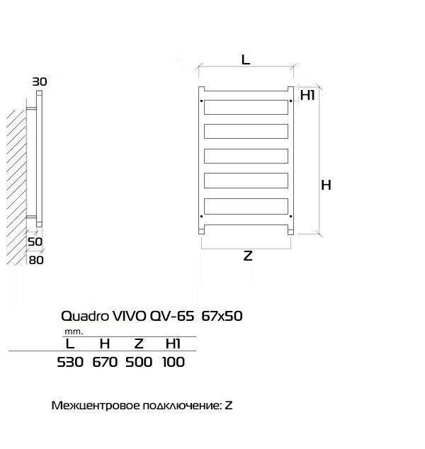 Полотенцесушители Quadro VIVO 67x30 (см) Полотенцесушитель водяной