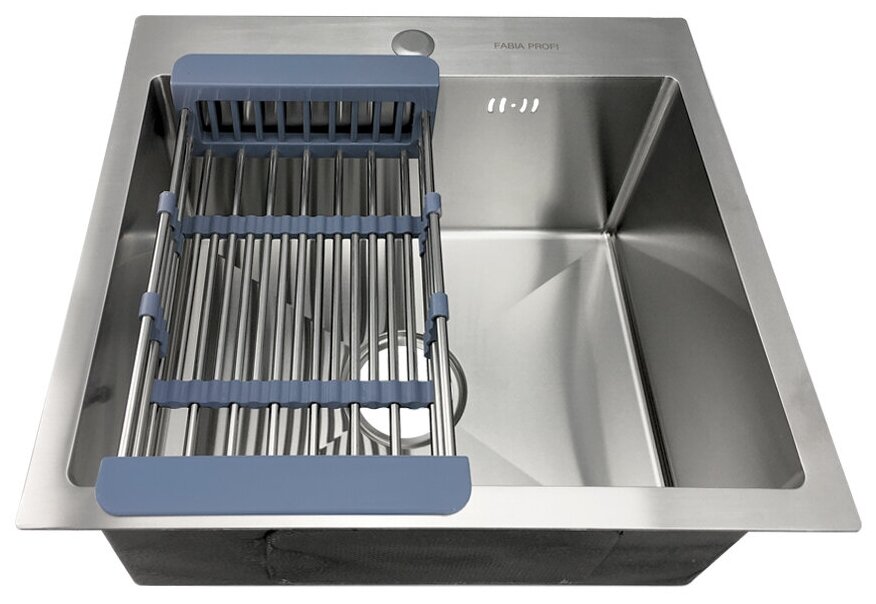 Кухонная мойка врезная из нержавеющей стали Fabia Profi 60503LR 60x50 см Глубина 20см, Сатин матовая поверхность, сифон и коландер в комплекте
