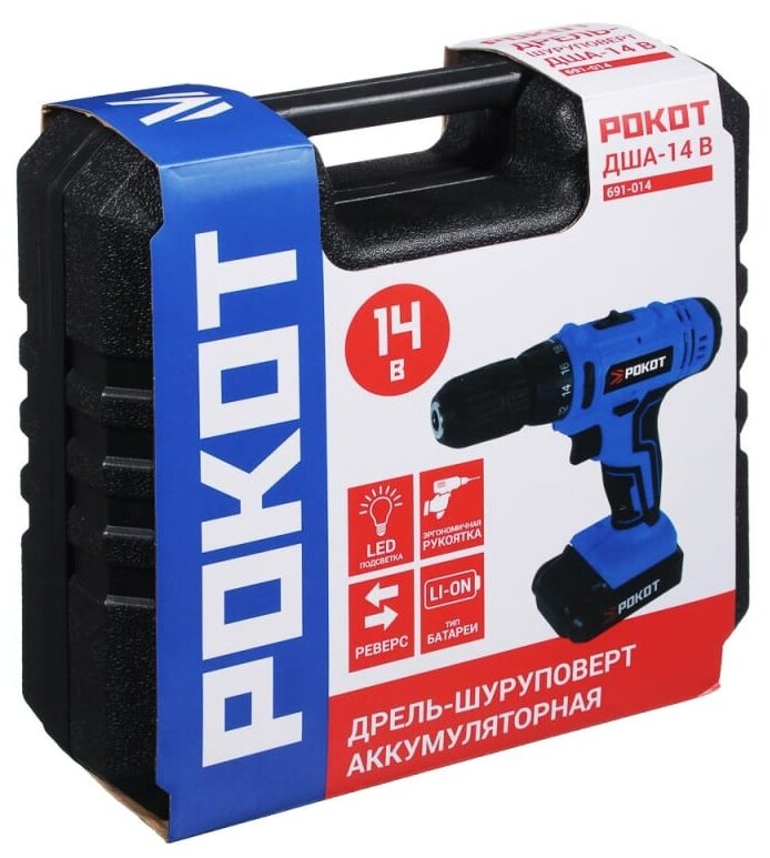 Лучшие цены. Аккумуляторная дрель-шуруповерт рокот ДША-14в 691-014 выкручивает и закручивает саморезы, сверлит отверстия и выполняет иные монтажные работы в различных труднодоступных местах. Оснащена эргономичной рукояткой с резиновыми вставками для надежного хвата. Инструмент имеет подсветку для работы в слабоосвещенном помещении или в темное время суток. Магазины в вашем городе.