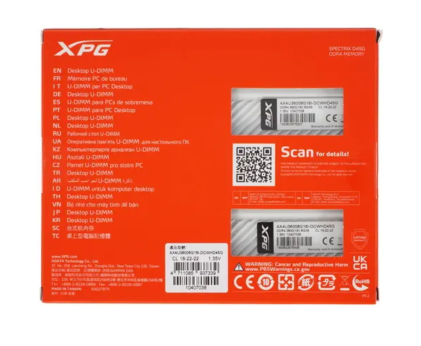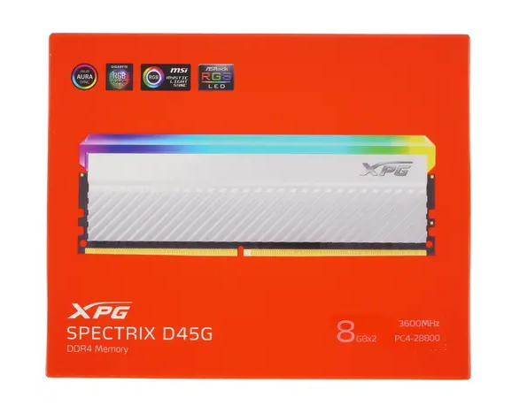 Оперативная память ADATA XPG Spectrix D45G RGB 16 ГБ (2x8 ГБ), DDR4, 3600 МГц, AX4U36008G18I-DCWHD45G
