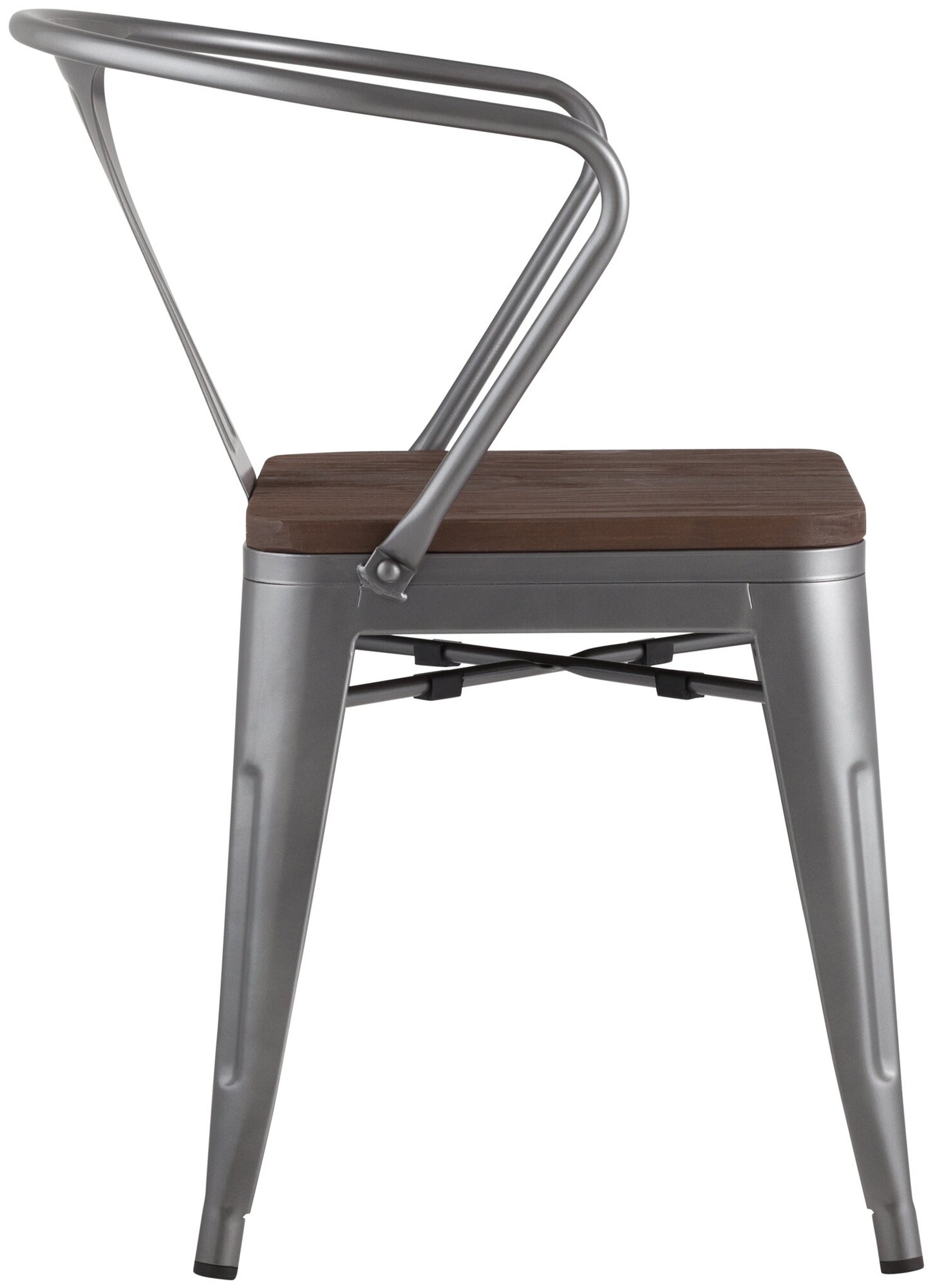 Стулья Стул TOLIX ARM WOOD серебристый матовый + темное дерево