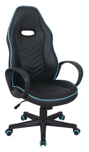 Кресло компьютерное Brabix "Flame Gm-004", экокожа, черное/голубое, 532498 .