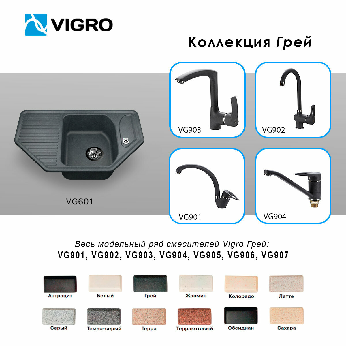 Мойки для кухни Vigro VG601 антрацит