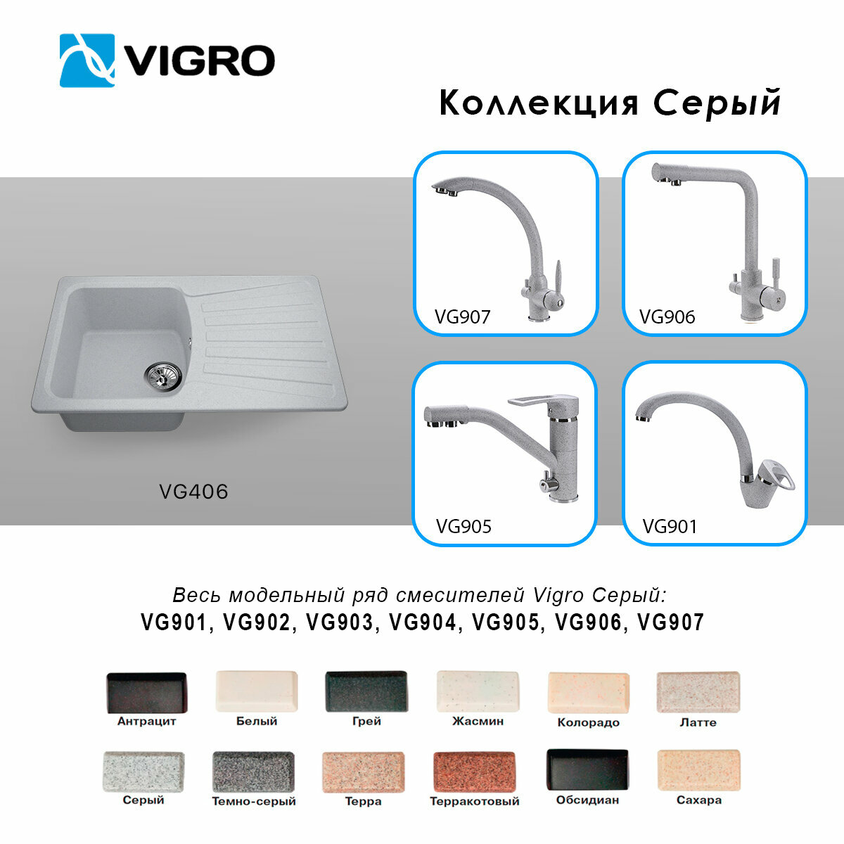 Кухонная мойка из искусственного камня Vigro VG406 грей (800*494*205)