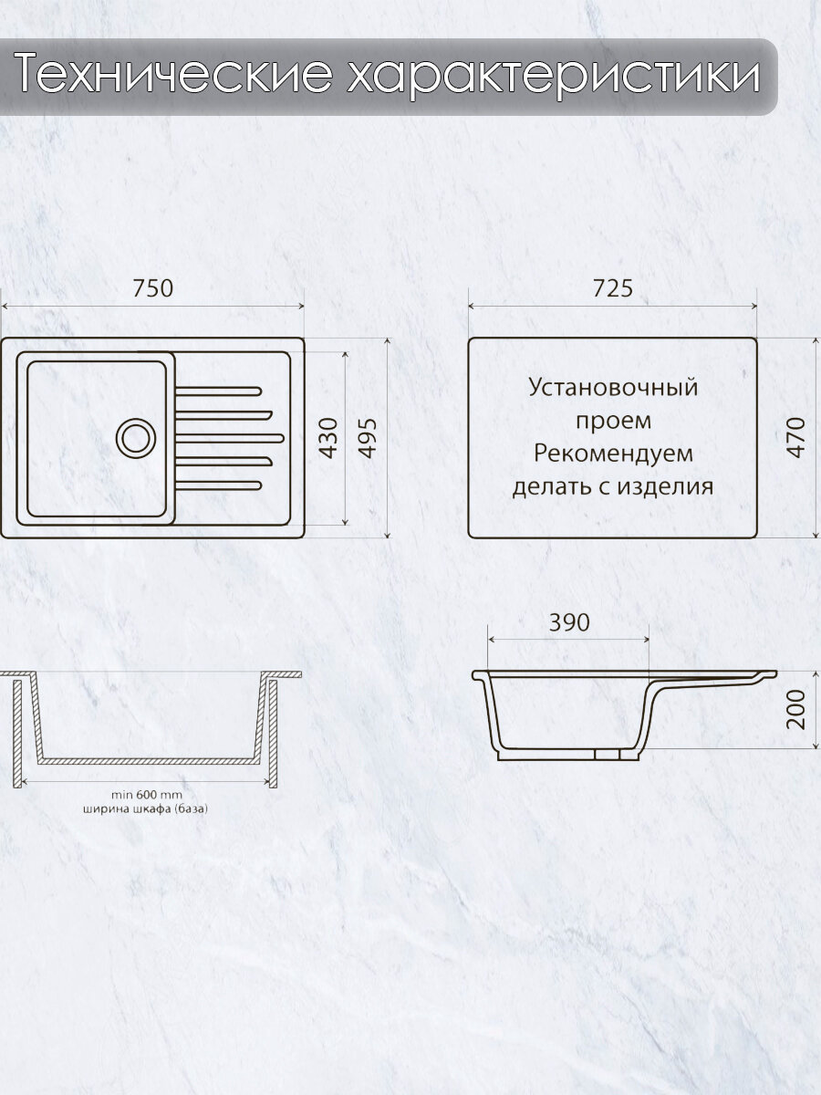 | Материал корпуса | мраморный композит |