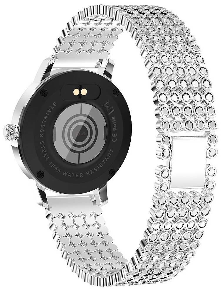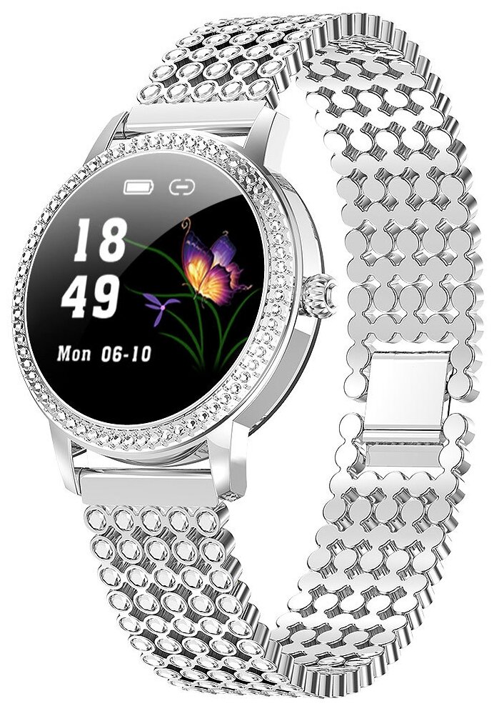 Лучшие цены. Женские смарт часы KingWear LW20 PRO комплектуются браслетом, инкрустированным стразами. Теперь это не только финтес трекер, но и потрясающе красивый аксессуар. Читайте сообщения прямо на экране часов, отклоняйте нежелательные звонки, настройте будильник и напоминания, мониторьте физическую активность, отслеживайте физиологический цикл, измеряйте пульс и давление... И ловите восхищенные взгляды окружающих). Магазины в вашем городе.
