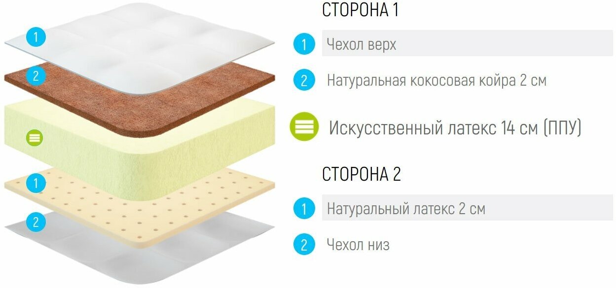 Матрас Lonax Foam Latex Cocos 2, Размер 120х185 см 19 073 ₽ Подробнее